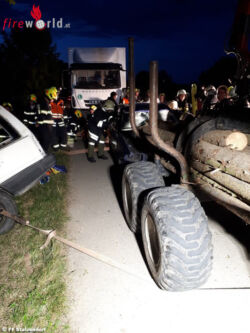 Übungsannahme war ein Verkehrsunfall mit zwei eingeklemmten Personen. Beteiligt waren dabei zwei Pkw, ein Traktor mit einem Holzrückewagen und ein Lkw. Beim Lkw kam es durch das abrupte Anhalten vor der Unfallstelle zu einem Zwischenfall mit einem Heizölfass.