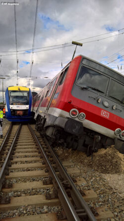AUGSBURG (BAYERN) Gegen 12:55 Uhr des 18. September 2017 wurde die Berufsfeuerwehr Augsburg zum Hauptbahnhof gerufen. Zwei Personenzüge waren zusammengestoßen. Die eigentliche Einsatzstelle befand sich ca. 1000m vom Hauptbahnhof in (Richtung Oberhausen) entfernt.