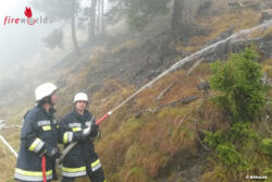 GLÖDNITZ (KTN): Vermutlich durch Blitzschlag ist auf der Flattnitz ein Waldbrand ausgebrochen. Die Bezirksalarm- und Warnzentrale St. Veit an der Glan alarmiert um 8.00 Uhr die zuständige Ortsfeuerwehr Glödnitz. Nach rund 45 Minuten Anfahrtszeit auf die „Kamml-Alm“ ist sofort klar: einige Hektar Wald stehen in Brand – weitere Feuerwehrkräfte sind dringendst notwendig; Alarmstufe 2 wird ausgelöst.