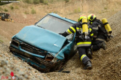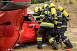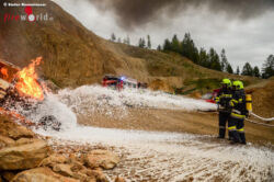 Dem nicht genug, geriet ein weiterer verunfallter Pkw nach einem Absturz im Steinbruch in Brand. Durch die sehr gute Zusammenarbeit der Feuerwehren des Abschnittes Trofaiach und den Einsatzkräften des Roten-Kreuzes konnte die gestellten Aufgaben wie erwartet schnell und professionell abgearbeitet werden, wovon sich die Übungsbeobachter ABI Gerhard Schöngrundner, HBI Gregor Reissner und Bürgermeister Mario Abl persönlich überzeugten.