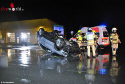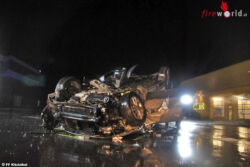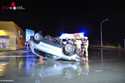 Das Auto kam auf dem Dach auf der Fahrbahn zu liegen. Der Fahrer eines entgegenkommenden Fahrzeuge konnte in letzter Sekunde noch rechtzeitig anhalten. Die Insassen des verunfallten Pkw konnten sich aus dem Auto befreien und verließen anschließend die Unfallstelle. Die Feuerwehr sicherte die Unfallstelle ab und reinigte, nachdem das Auto abgeschleppt wurde, die Fahrbahn.