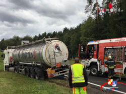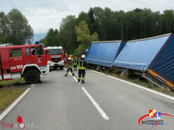 Aus ungeklärter Ursache war ein Tankfahrzeug beladen mit Gefahrgut von der Fahrbahn abgekommen. Verletzt wurde bei dem Crash glücklicherweise niemand. Die FF Pinkafeld sicherte gemeinsam mit der Exekutive die Unfallstelle ab und stellte den Brandschutz sicher. Gemeinsam mit einem privaten Abschleppunternehmen wurde der Gefahrguttransporter wieder zurück auf die Fahrbahn gezogen. Nach über vier Stunden im Einsatz konnte dann ins Feuerwehrhaus eingerückt werden.