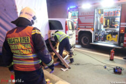 SCHWECHAT (OÖ): Am Donnerstag des 21.09.2017 wurde die Freiwillige Feuerwehr Schwechat kurz nach Mittag zu einer Fahrzeugbergung in den Tunnel Rannersdorf alarmiert. An der Unfallstelle wurde ein fahrunfähiges Anhängergespann am rechten Fahrstreifen vorgefunden.
