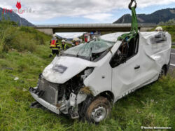 MAUTERN (STMK): Großes Glück hatte der Fahrer eines Kleinbusses in den Mittagsstunden des 22. September 2017 bei einem Fahrzeugüberschlag auf der A9 bei Mautern.