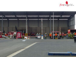 Der Fachzug (FZ) Atemschutz & Strahlenschutz kümmerte sich um den atomaren Strahler, der FZ Gefahrgut um die Stückgüter, der FZ Messen & Spüren nahm Messungen der Luft im Umfeld der Einsatzstelle vor, während der FZ Dekon die Personen-Dekontaminationsstelle aufbaute, wo später die unter Chemieschutzanzügen eingesetzten Kräfte grob gereinigt wurden. Nach rund drei Stunden waren die Lagen abgearbeitet und die Übung beendet. Bei der nachfolgenden Manöverkritik wurden die eingeleiteten Maßnahmen und Verbesserungspotentiale besprochen, bevor es dann gekühlte Getränke und einen Imbiss gab.