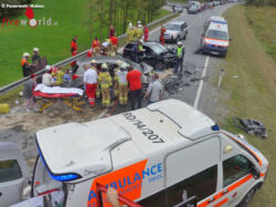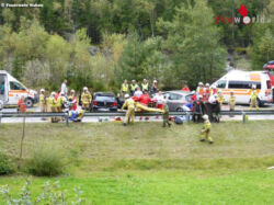 HUBEN (TIROL): Wegen eines Frontalzusammenstoßes auf der B186 im Bereich Winkle mussten am Samstag, den 23. September 2017, gegen 15 Uhr die Feuerwehren Huben und Längenfeld ausrücken. Beim Eintreffen der Einsatzkräfte war die Lage durch die teils schwer verletzten Personen nicht einfach.