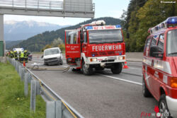 "Wir sind gemeinsam mit der Feuerwehr Windischgarsten zu einem Verkehrsunfall mit eingeklemmter Person auf der Autobahn A9 Höhe Rastplatz Pyhrn-Priel alarmiert worden. Beim Eintreffen am Einsatzort haben wir ein verunfalltes Fahrzeug vorgefunden, die Unfallstelle war noch nicht abgesichert. Wir haben dann begonnen mit den ersten Fahrzeugen die Unfallstelle abzusichern und in weiterer Folge den Brandschutz aufzubauen sowie ausgelaufene Betriebsmittel zu binden," so Stefan Patzl, Einsatzleiter der Feuerwehr Spital am Pyhrn.