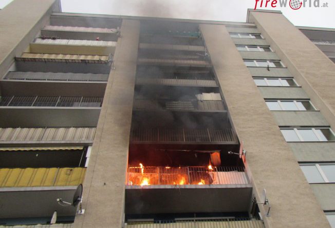 GRAZ (STMK): Gegen 07.00 Uhr wurde die Berufsfeuerwehr Graz am 28. September 2017 zu einem Zimmerbrand in ein Hochhaus in die Straßganger Straße alarmiert. Bereits auf der Anfahrt wurde von mehreren Notrufern gemeldet, dass auf einem Balkon im 4. Obergeschoß ein Brand ausgebrochen ist.