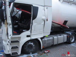 Offensichtlich beabsichtigte er sein Fahrzeug auf der Parkfläche für Schwertransporte abzustellen. Dabei übersah der Fahrer einen dort abgestellten Transporter aus Nordrhein-Westfalen, der mit einem Flügel für eine Windkraftanlage beladen war. Beim Aufprall bohrte sich das Ende des Flügels durch die Fahrerkabine der Sattelzugmaschine. Der 56-Jährge erlitt schwerste Verletzungen und musste durch mehrere Feuerwehren aus dem Landkreis Harburg aus seinem Fahrerhaus befreit werden. Von der Staatsanwaltschaft in Stade wurde zusätzlich zu den polizeilichen Ermittlungen ein Unfallgutachter eingesetzt. Der Gesamtschaden kann nicht abschließend beziffert werden, es wird aber von mehreren hunderttausend Euro ausgegangen.
