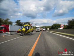 Aaus bisher ungeklärte Ursache kam die Kolonne auf der Mittelspur der Baustelle zu stoppen. Der nachfolgende Lenker des Lkw konnte sein Fahrzeug nicht mehr anhalten und prallte auf einen bereits stehenden Lkw. Dabei wurde der Lenker in seinem Führerhaus im Becken und Fußbereich eingeklemmt.