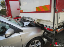 NESTELBACH (STMK): Gegen 15:30 Uhr des 28. September 2017 kam es zu einem schweren Auffahrunfall im Rückstaubereich der Baustelle beim Autobahnknoten Graz-Ost. In diesem Unfall wurden zwei Lkw und ein Pkw verwickelt.