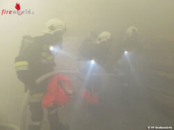 Weitere Info für Feuerwehrinsider: Aus Gründen das Sachwertschutzes wurde das Löschwasser nicht direkt auf die angenommenen Brandobjekte aufgebracht. Eine Brandbekämpfung per TMB würde natürlich im Ernstfall von wesentlich näher am Objekt erfolgen.