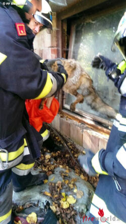 SIEGENFELD (NÖ): Laute Tierschreie machten einen Anrainer aufmerksam, dieser hielt Nachschau und entdeckte auf seinem Nachbargrundstück einen Fuchs, der in einem gekippten Fenster verharrte.