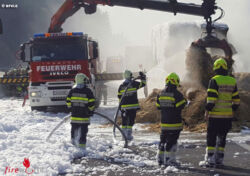 Beim Eintreffen der Einsatzkräfte wurde ein mit Heuballen beladener Lkw, dessen Ladung in Brand stand, vorgefunden, wobei umgehend mit der Brandbekämpfung begonnen wurde. Unter Einsatz von schwerem Atemschutz und Schaummittel wurde begonnen, den Brand einzudämmen. Unmittelbar wurde das mit einem Ladekran bestückte Wechselladefahrzeug (WLF) der FF Kammern und das Atemschutzfahrzeug (ASF) der BTF Donawitz nachalarmiert. Um die Wasserversorgung der Löschfahrzeuge zu gewährleisten, wurden zusätzlich noch die Feuerwehren Traboch und Trofaiach hinzugezogen.