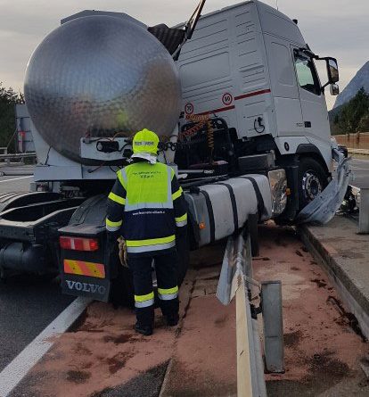 VILLACH (KTN): Gegen 14:30 Uhr des 31. Oktober 2017 wurde die Hauptfeuerwache Villach gemeinsam mit der Freiwilligen Feuerwehr Arnoldstein zu einem Lkw-Unfall auf der A2 Südautobahn in Fahrtrichtung Villach im Bereich Warmbad alarmiert.