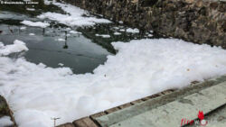 Anrainer bemerkten auf einem kleinen Fluss eine ungewöhnlich starke Schaumbildung. Da die Polizei die Situation bestätigen konnte wurden die Schadstoffeinheiten der Feuerwehr hinzugezogen.