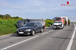SATTLEDT (OÖ): Ein schwerer Auffahrunfall mit drei beteiligten Fahrzeugen auf der Voralpenstraße in Sattledt (Bezirk Wels-Land) forderte Mittwochnachmittag, den 4. Oktober 2017, mehrere Verletzte. Der Unfall ereignete sich vor einer Baustelle auf der Voralpenstraße zwischen Sattledt und Kremsmünster.