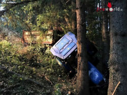 SULZBACH (OÖ): HOCHSTRASS (NÖ): Gegen 18.00 Uhr des 5. Oktober 2017 wurde die FF Sulzbach zu einer Traktorbergung ins angrenzende Niederösterreich gerufen. Ein Landwirt ist beim Miststreuen auf steilem Gelände abgerutscht.