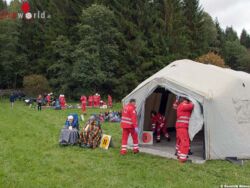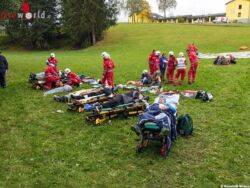 WALDENSTEIN (NÖ): Eine nicht „alltägliche“ Feuerwehrübung wurde am 7. Oktober 2017 in Waldenstein durchgeführt. Gemeinsam mit dem Roten Kreuz und der Suchhundestaffel des Roten Kreuz mussten über 15 „Verletzte“, dargestellt von Freiwilligen, gerettet und versorgt werden.