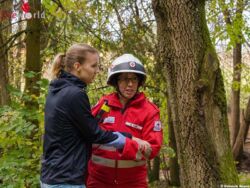 Um die Übung so realitätsnahe wie möglich zu gestalten, wurden nicht nur die „Opfer" im Vorfeld durch ein Team des Roten Kreuz unterwiesen wie sie sich verhalten sollten, sondern es änderte sich auch die Lage für die Einsatzkräfte, wie im realen Einsatz, ständig. Nachdem einige Verletzte versorgt und zum Abtransport bei der „Verletztenablage" vorbereitet wurden, stellten die Einsatzleiter von Feuerwehr und Rotem Kreuz nach Aussagen von Verletzten fest, dass noch einige Jugendliche in Wald sein mussten. Vermutlich liefen sie im Schock in den Wald und versteckten sich.