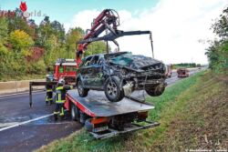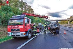 Nach der polizeilichen Freigabe wurde das Unfallwrack von der Feuerwehr mittels Last auf die Räder gestellt, geborgen und von der Schnellstrasse verbracht. Weiters mussten ausgelaufene Betriebsmittel gebunden und die Fahrbahn von Fahrzeugteilen gereinigt werden. Der Pferdeanhänger wurde nach abladen des Pkws ebenfalls mittels Last geborgen und verbracht.