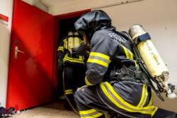 Am Ausbildungs- und Trainingsgelände fand die Heißausbildung statt. In mehreren Stahlcontainern waren praxisnahe Situationen unter Einfluss von Feuer, Rauch und Hitze zu absolvieren. Die Teilnehmer sollten so auch ein Gefühl für den realen Atemschutzeinsatz erhalten.