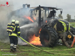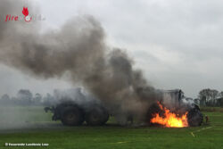 Unter schwerem Atemschutz gingen die Einsatzkräfte dann gegen die Flammen vor. Zunächst mit Wasser aus dem Fahrzeugtank und im weiteren Verlauf dann aus einem Graben entnommenes Wasser. Das Feuer war zwar schnell unter Kontrolle gebracht, der Traktor wurde aber vollständig zerstört. Das nachgeforderte Fahrzeug aus Leer wurde nicht mehr eingesetzt.