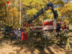 GMÜND (NÖ): 46 Feuerwehrmänner und -frauen übten Mitte Oktober 2017 bei strahlendem Sonnenschein in der Gmünder Blockheide. Angenommen wurde ein starkes Unwetter, worauf zahlreiche Bäume umgestürzt waren und umzustürzen drohten. Außerdem waren mehrere Straßen unpassierbar und wichtige Stromversorgungsleitungen von Bäumen beschädigt.