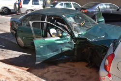 Durch den Zusammenprall wurde ein Fahrzeug auf den Gehsteig zwischen der Hausmauer und geparkten Pkw geschleudert, der andere Wagen schlitterte mit abgerissenem Vorderrad noch einige Meter weiter und touchierte drei geparkte Pkw bis er stehen blieb. In diesem Wagen wurden zwei Personen eingeklemmt.