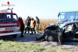KIRCHBERG AM WAGRAM (NÖ): Zu einem schweren Verkehrsunfall kam es am Nachmittag des 16. Oktober 2017 bei Winkl (Gem. Kirchberg/Wagram, Bez. Tulln). Auf der Landestraße stießen ein Pkw Kombi und ein Linienbus zusammen.