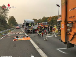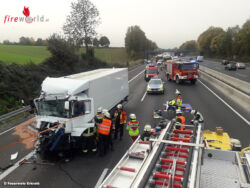 Deutschland: Schwerer Verkehrsunfall auf der BAB 3 → Feuerwehr befreit eingeklemmten Lkw-Fahrer