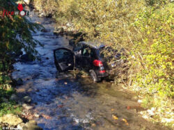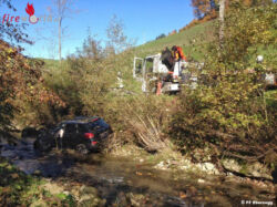 KLEINRAMING (OÖ): Bei km 10,1 auf der Ramingtaler Landesstraße in Fahrtrichtung Steyr landete am 17. Oktober 2017 ein Pkw aufgrund eines riskanten Überholmanövers im Ramingbach.