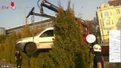 Wien: Spektakulärer Verkehrsunfall → Kastenwagen hängt zwischen Gebäudedach und Gehsteig