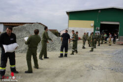 Fünf mögliche Aufgaben im Zuge eines Hochwassereinsatzes waren die Aufgabenstellung: drohendes Aufschwimmes eines Öltankes, Schutzdamm errichten, Fahrzeuge aus dem Gefahrenbereich bringen, Pumparbeiten durchführen und eine Ölsperre errichten.
