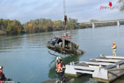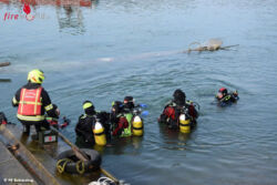 Oö: 20 Taucher bei Übung (Hubschrauberabsturz in den Inn) im Einsatz