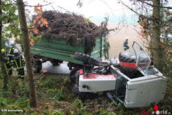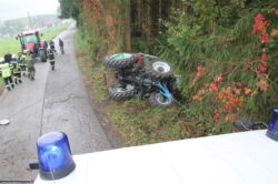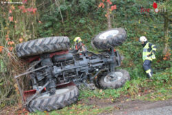SCHWERTBERG (OÖ): Am Samstag, den 21. Oktober 2017, kam in der Mittagszeit auf einem Güterweg im Ortsteil Winden, Gemeinde Schwertberg, aus noch ungeklärter Ursache ein Traktor samt Anhänger auf einer abschüssigen Straße ins Schleudern und stürzte in Folge um.