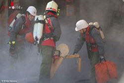 Zwischendurch – wie eben im „richtigen Feuerwehrleben“ – forderten spezielle Übungen, die in Anlehnung an reale Einsatzszenarien gestaltet wurden, die Jungfeuerwehrmänner. Von den Betreuern wurde vorab ein detaillierter Zeitplan erstellt, in dem Schulungen, Freizeit und natürlich auch „Einsätze“ festgelegt worden waren. Nur die Jungfeuerwehrmänner wussten von diesen Fixzeiten natürlich nichts, und waren sichtlich aufgeregt, wenn immer wieder eine „Einsatzmeldung“ einlangte.