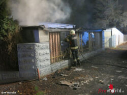 OBERWART (DEUTSCHLAND): Am Montag, dem 23.10.2017, wurde die Feuerwehr der Stadt Oberwart gegen 03:50 Uhr zu einem B2/Dachstuhlbrand in Oberwart alarmiert. Am Einsatzort stellte sich heraus, dass ein Schuppen in Vollbrand steht.