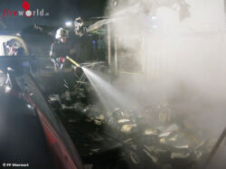 Sofort wurde mittels Hochdruckrohr begonnen, das Feuer zu bekämpfen. Auch zwei Fahrzeuge, die sich in unmittelbarer Nähe befanden, wurden beschädigt. Mittels Wärmebildkamera wurden Glutnester ausgeforscht und nach kuzer Zeit konnte „Brand Aus" gegeben werden. Nach ca. 1 ½ Stunden konnte die Einsatzbereitschaft wieder hergestellt werden.