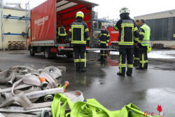 Eine Gasflasche hatte während dem Arbeiten zu brennen begonnen. Die Mitarbeiter alarmierten die Feuerwehr. Insgesamt standen vier Feuerwehren im Einsatz. Um die Explosionsgefahr endgültig bannen zu können musste schließlich ein Beamter des Polizeieinsatzkommandos Cobra die Gasflasche an mehreren Stellen beschießen. Nach rund zwei Stunden war die Gefahr gebannt und der Einsatz der Feuerwehren beendet. Verletzt wurde niemand.