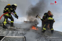 Brandursache: Brandentstehung vermutlich durch Dachsanierungsarbeiten.