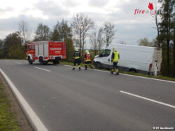 Der Transporter kam aus unbekannter Ursache von der Fahrbahn ab und blieb im Ge-büsch stecken. Verletzt wurde bei diesem Unfall niemand. Das Fahrzeug wurde mittels Seilwinde geborgen und zurück auf die Straße gezogen. Nach einer Stunde war der Einsatz auch schon wieder beendet.