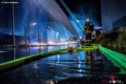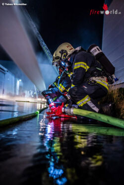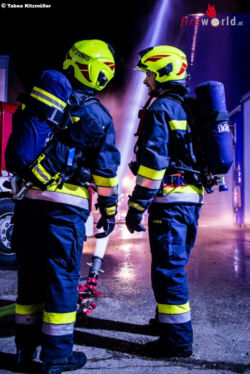 TRAUN (OÖ): Die Freiwillige Feuerwehr Traun und die Freiwillige Feuerwehr Rutzing übten am 25. Oktober 2017 gemeinsam bei der in Traun angesessenen Firma Pflaum & Söhne Bausysteme GmbH. Angenommen wurde ein Brand in einem Tanklager, in dem verschiedene brennbare Stoffe gelagert werden.
