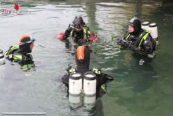 Vier Anwärter stellten sich dem Kurs „Tauch-I“ und wurden dabei von einem Anwärter für den Kurs „Tauch-III“ im Rahmen ihrer Ausbildung intensiv begleitet. Dieser wiederum wurde von den Feuerwehrtauchlehrern dabei beobachtet und dementsprechend bewertet.