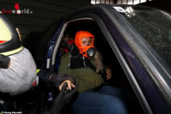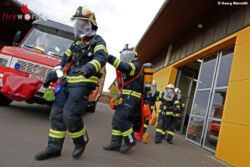Um die Ausbildung möglichst realistisch zu gestalten, wurden den Sichtscheiben der Atemschutzmasken zusätzlich verblendet und die Sichtweite so auf einige wenige Zentimeter reduziert.