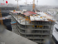 Auf einer Baustelle in der Leopoldstädter Walcherstraße riss der Sturm Baumaterial von einem 9-stöckigen Gebäude. Gelagerte und zum Teil bereits verlegte Dämmplatten und Lüftungsrohre stürzten auf die Walcherstraße. Die Einsatzkräfte sicherten das lose Material.