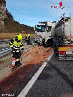 Ktn: Treibstoffaustritt nach Lkw-Unfall auf der A2 im Bereich Warmbad Villach