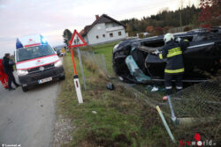 BUCHKIRCHEN (OÖ): Drei Verletzte forderte Dienstagabend, 31. Oktober 2017, ein Autoüberschlag auf der Mistelbacher Straße in Buchkirchen (Bezirk Wels-Land).
