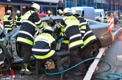 Der Fahrer des Audi konnte aufgrund seiner Verletzungen das Fahrzeug nicht selbstständig verlassen. Ein anwesender Arzt Unterstützte das Rettungsdienstpersonal bei der Erstversorgung bis zum Eintreffen der Notarztbesatzung der Innenstadt. Anschließend wurde mit Hilfe des hydraulischen Rettungssatzes eine große Seitenöffnung geschaffen, um den Patienten möglichst schonend aus dem Wrack zu befreien.