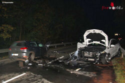 Als die ersten Rettungskräfte wenig später eintrafen, wurden die beiden Fahrzeugführer bereits vorbildlich von Ersthelfern versorgt. Glücklicherweise stellte sich auch heraus, dass beide nicht eingeklemmt waren und sowohl der 49-jährige Fahrer des Mercedes wie auch die 36-jährige Fahrerin des VW Golf nur leichte Verletzungen davongetragen hatten.